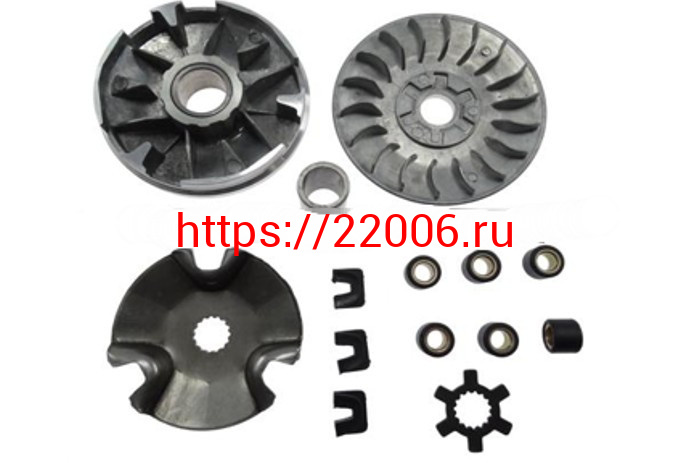 - Вариатор Yamaha JOG-90 в сборе (ролики, наружный шкив, палец, шайба наружного шкива) в Новоуральске недорого
