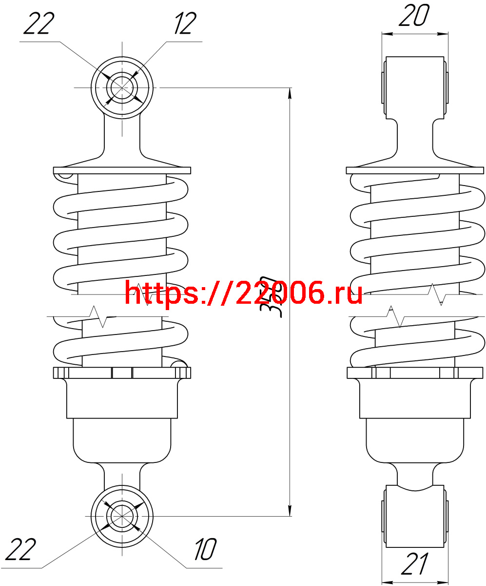 - Амортизатор Alpha зад. хром (L-350,D1-22,d1-12, Н1-20, D2-22,d2-10, Н2-21) ДОРОГОЙ (длинный стакан) в Новоуральске недорого