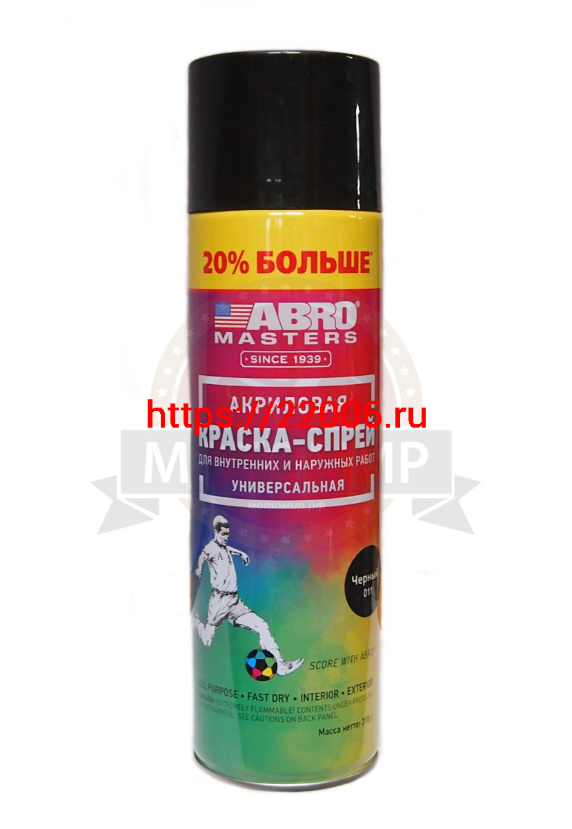- Краска спрей ABRO masters +20%, универсальная ЧЕРНАЯ глянцевая аэрозоль, 310 мл. (SP-011-L-AM-RE) в Новоуральске недорого