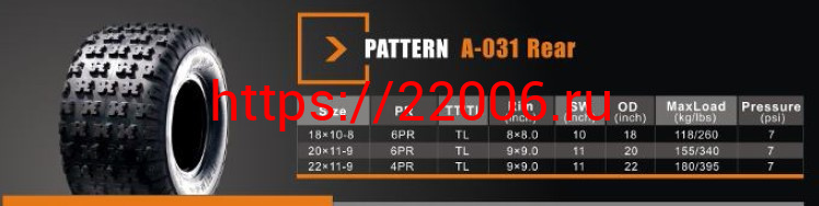 - Покрышка ATV 9" 22 х 11,00 - 9 (А-031) без камеры, задние SUN.F в Новоуральске недорого