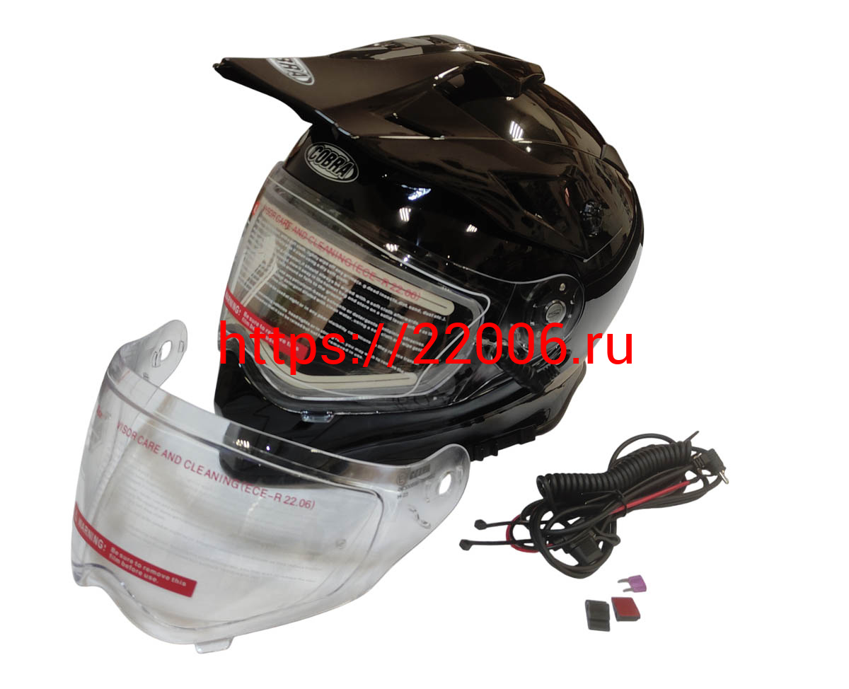 - Шлем кроссовый со стеклом (туринг) СНЕГОХОДНЫЙ COBRA EC H331, черный, с ПОДОГРЕВОМ ВИЗОРА, размер M в Новоуральске недорого