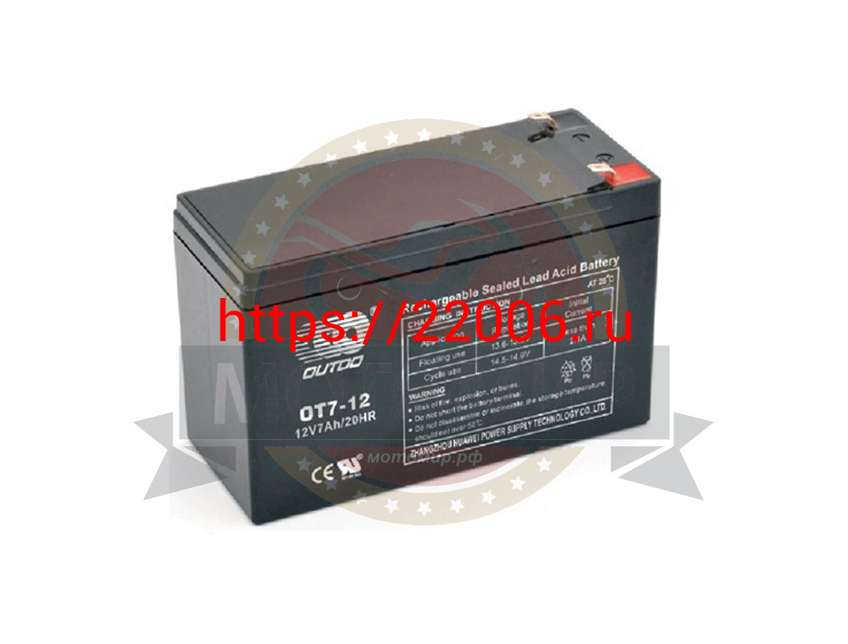 - Аккумулятор 6В 7 А/ч, кислотный AGM OТ7-6, OUTDO (151х35х94х100по_клеммам) прямая пол. в Новоуральске недорого