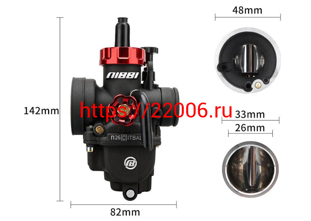 - Карбюратор NIBBI Racing PE26 (YJ), реком.двиг. 140-160 см3 (вход/выход 26 и 48 мм) в Новоуральске недорого