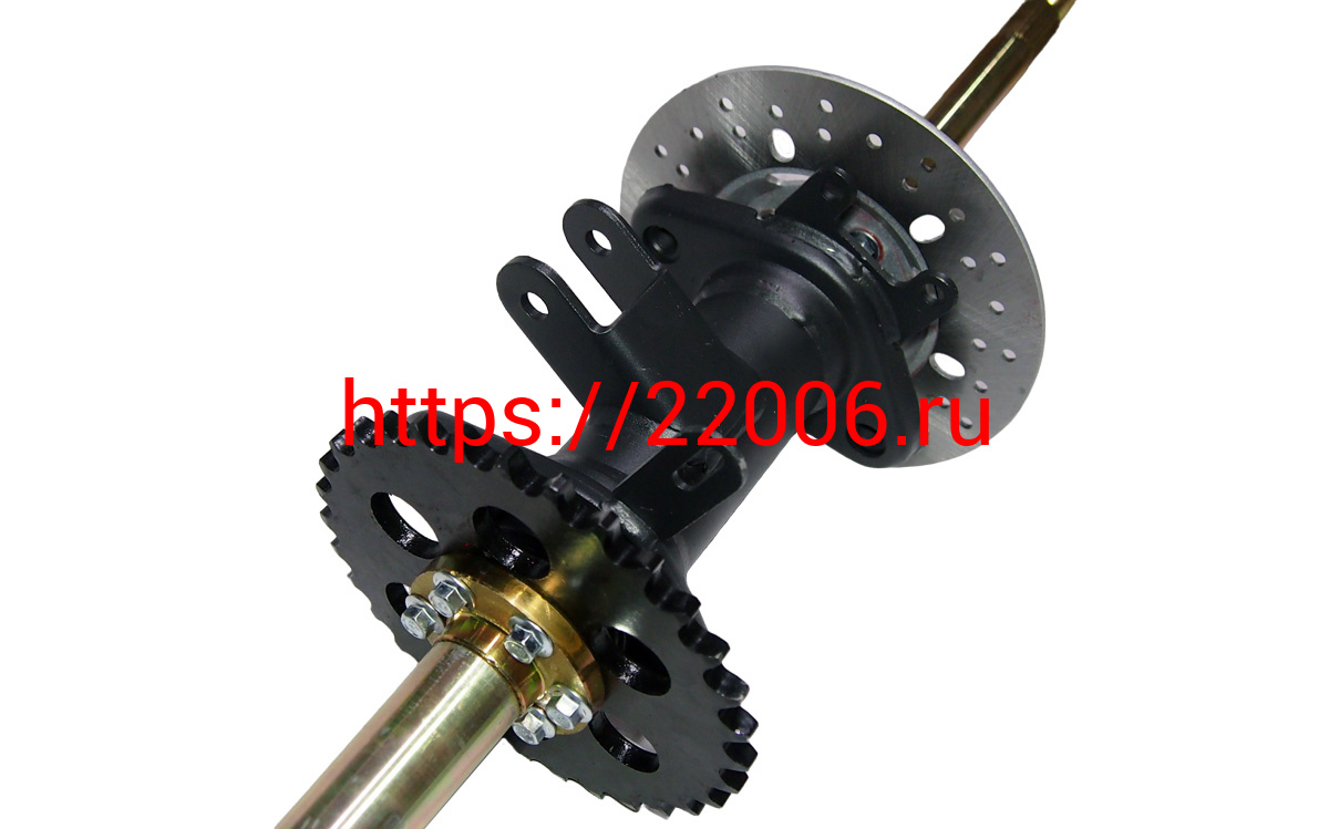 - Ось задняя (810мм*М20*1,5мм) ATV TUNGUS 250 в сборе (корпус поднипника, диск тормоза, звезда) в Новоуральске недорого