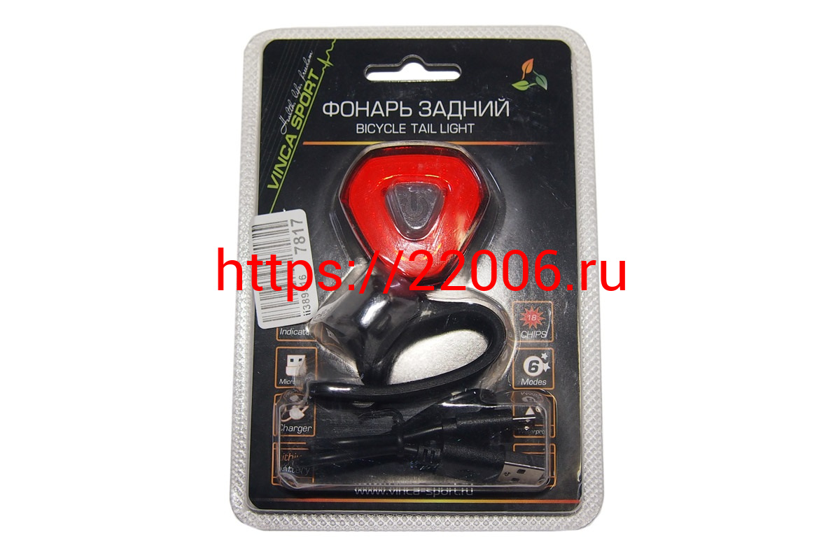 - Фонарь Вело задний, кабель USB для подзарядки в комплекте, инд.уп.VS в Новоуральске недорого