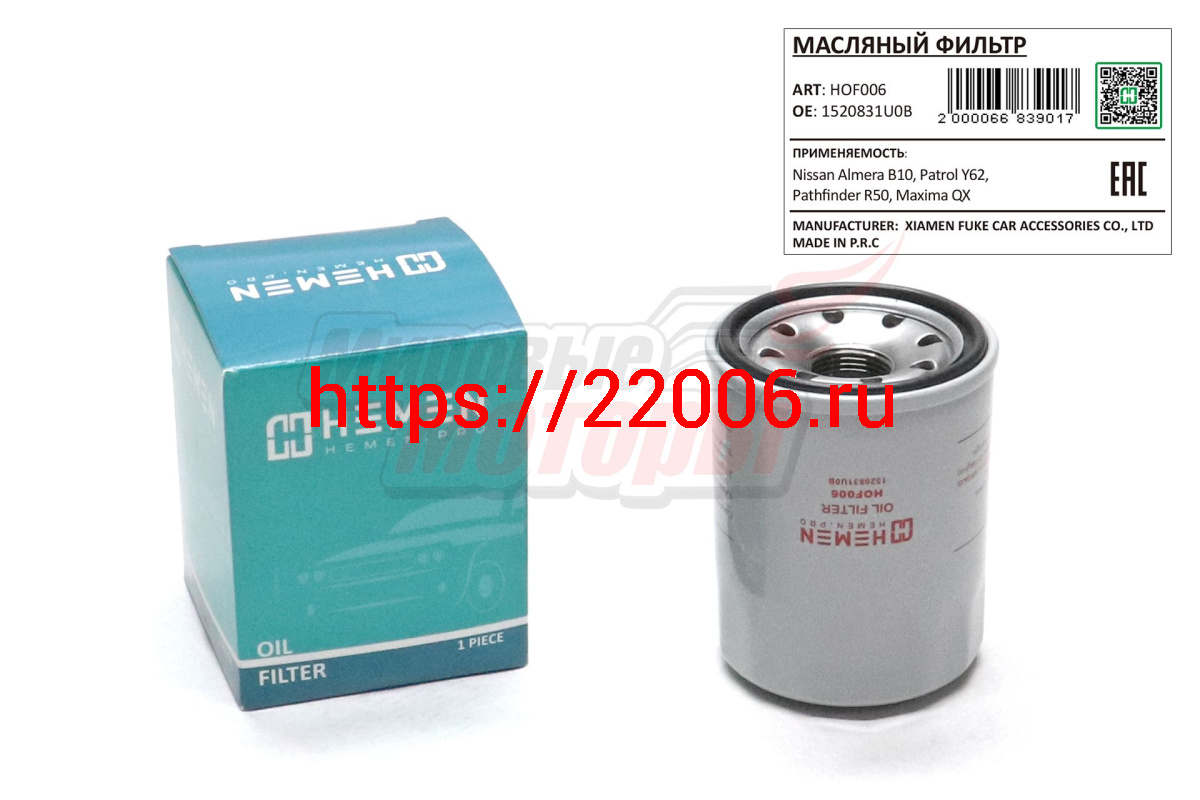 - Фильтр масляный Nissan Almera B10, Patrol Y62, Pathfinder R50, Maxima QX (HOF006) в Новоуральске недорого