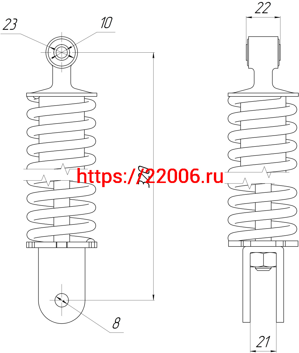 - Амортизатор зад. L-320, D1-23, d1-10, H1-20, d2-8, H2-21 HONDA DIO50 в Новоуральске недорого
